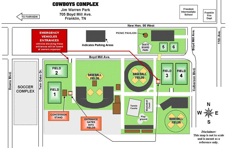 Additional parking is available behind the baseball fields. Remember to park only in designated parking slots. Do not park on any grass areas or medians. Tickets will be issued by the Franklin Police Department.